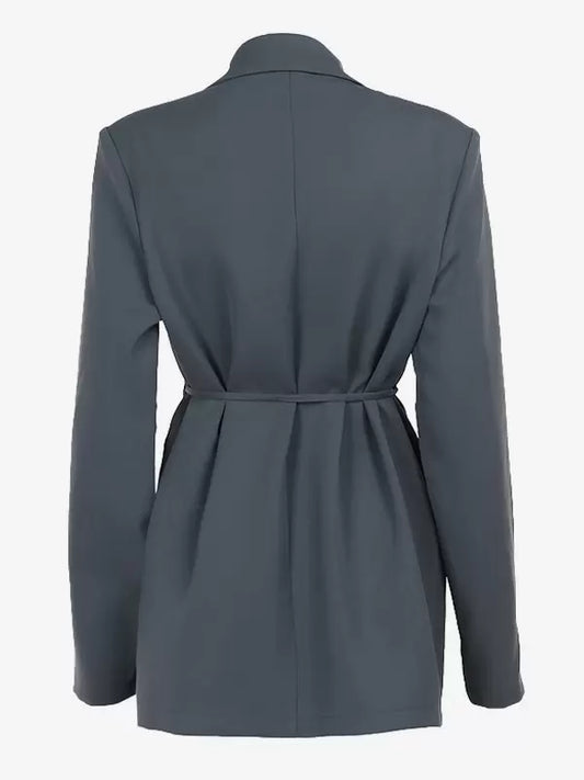 Flower Blazer Damen – Grau mit Bindegürtel & Blumen-Detail