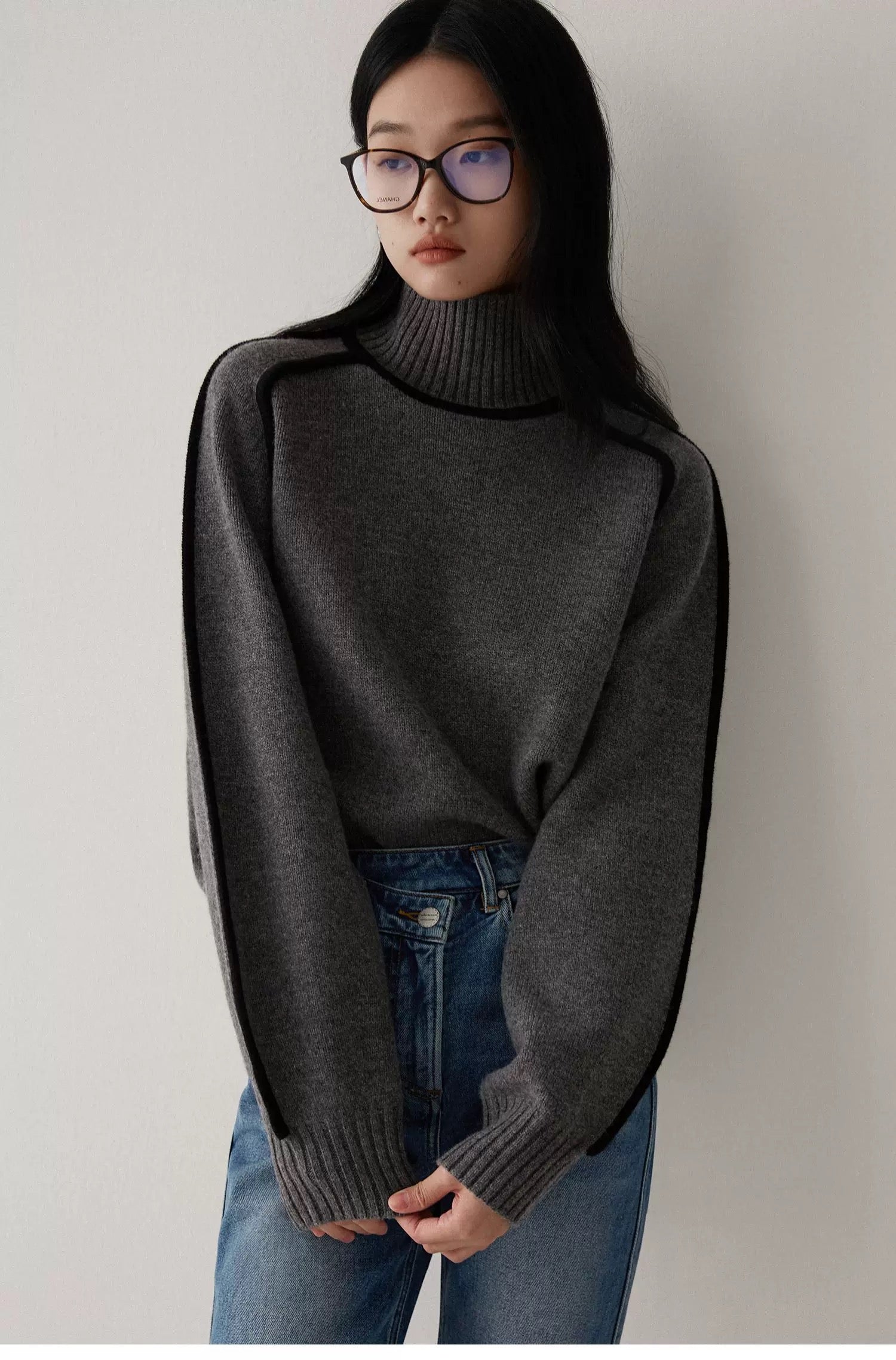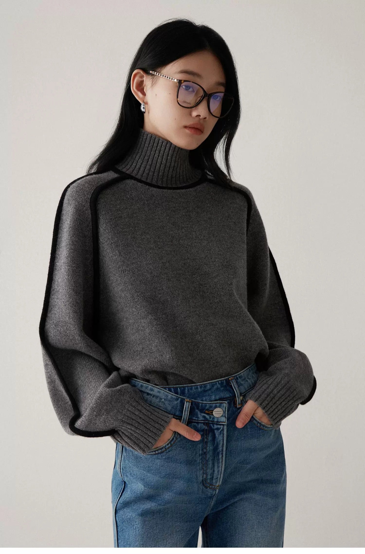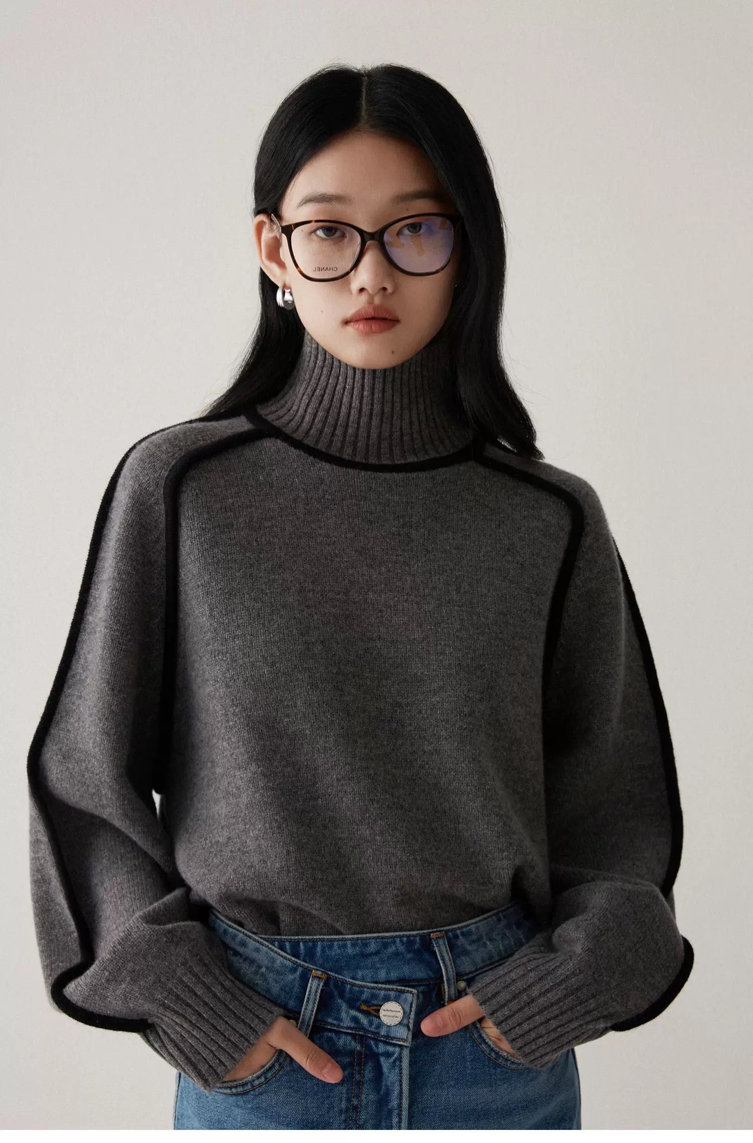 Ein Hauch von Pariser Eleganz trifft auf zeitlose Gemütlichkeit: Der Rollkragenpullover Élan de Neige überzeugt durch seine luxuriöse Haptik und ein minimalistisches Design. Feine Kontraste in Schwarz betonen die Silhouette und verleihen dem cremefarbenen Strick eine moderne Note. Der weiche Oversize-Schnitt und der gerippte Kragen sorgen für höchsten Tragekomfort – ideal für stilvolle Wintertage. Kombinierbar mit Wollhosen, Röcken oder Denim für einen edlen Alltagslook.