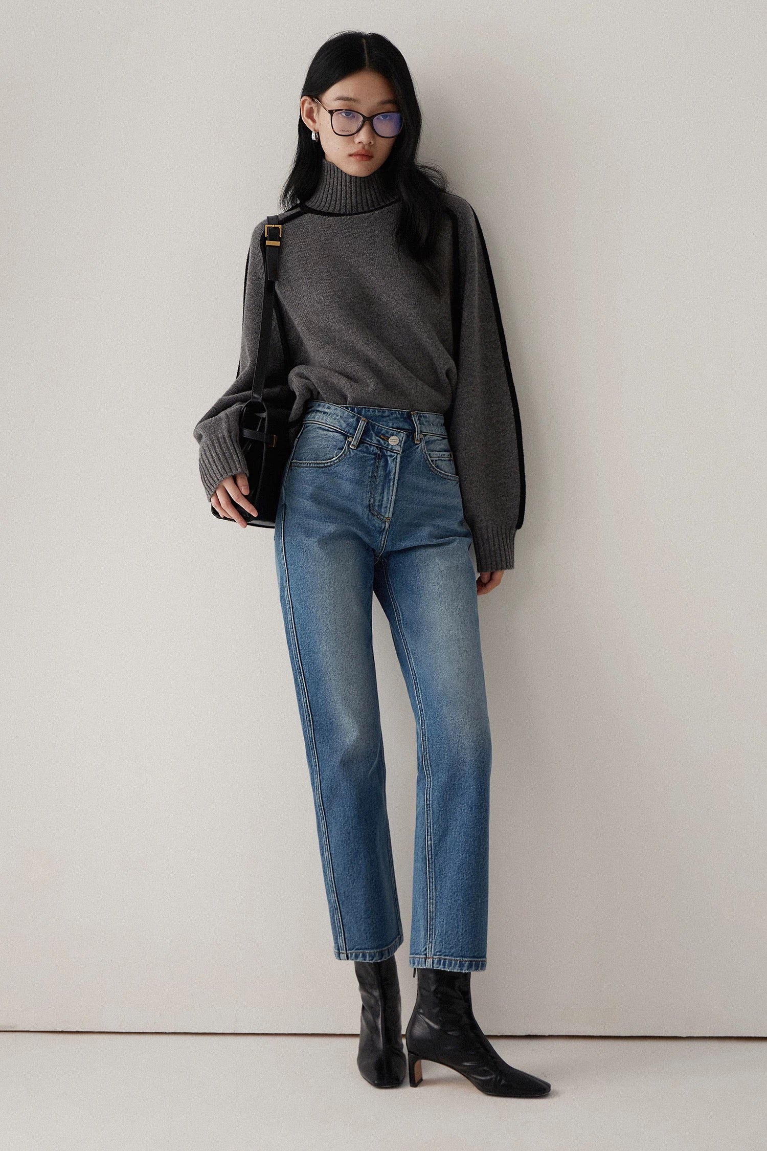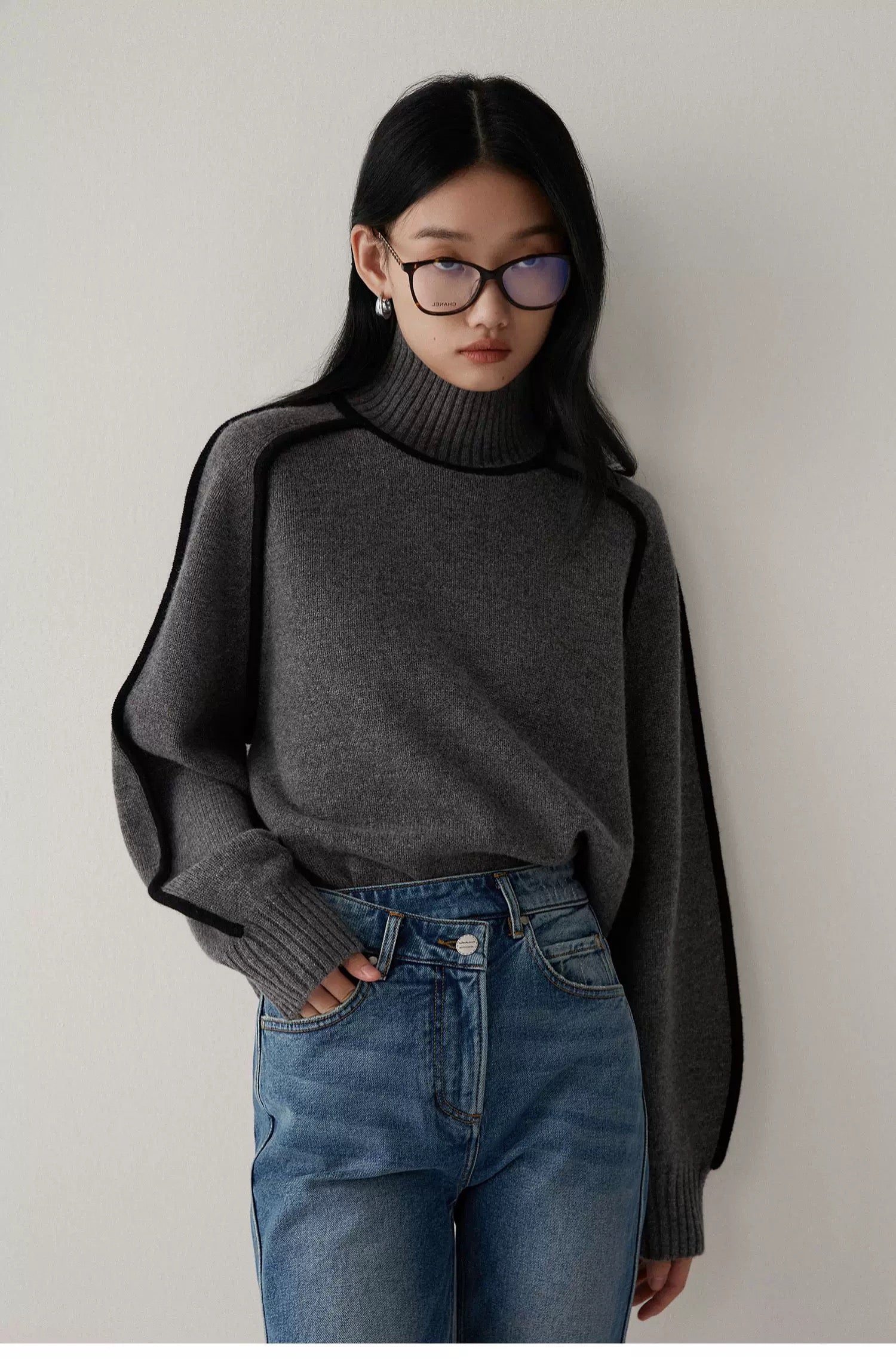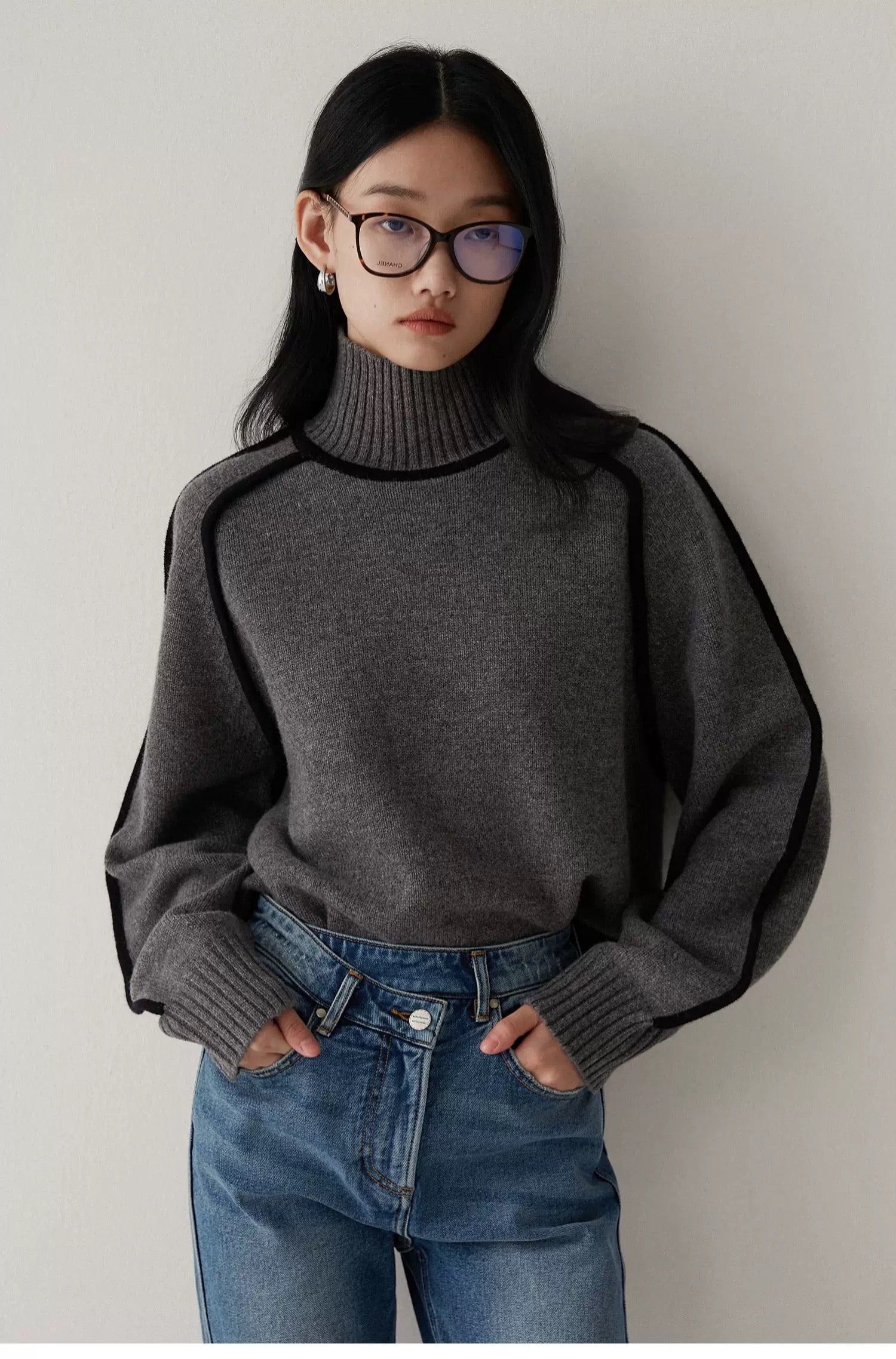Ein Hauch von Pariser Eleganz trifft auf zeitlose Gemütlichkeit: Der Rollkragenpullover Élan de Neige überzeugt durch seine luxuriöse Haptik und ein minimalistisches Design. Feine Kontraste in Schwarz betonen die Silhouette und verleihen dem cremefarbenen Strick eine moderne Note. Der weiche Oversize-Schnitt und der gerippte Kragen sorgen für höchsten Tragekomfort – ideal für stilvolle Wintertage. Kombinierbar mit Wollhosen, Röcken oder Denim für einen edlen Alltagslook.