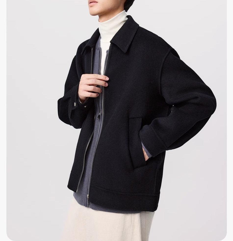 Klassisch, warm und modern: Diese Herbst-/Winterjacke aus hochwertiger doppelseitiger Wolle vereint zeitloses Design mit exzellentem Tragekomfort. Das kurze Revers sorgt für eine markante Silhouette – perfekt für stilbewusste Männer in der kühlen Saison.