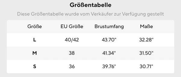 Größenhinweise: Bitte beachte die Größentabelle in der beigefügten Abbildung.