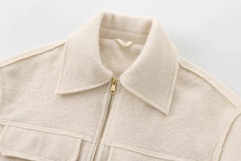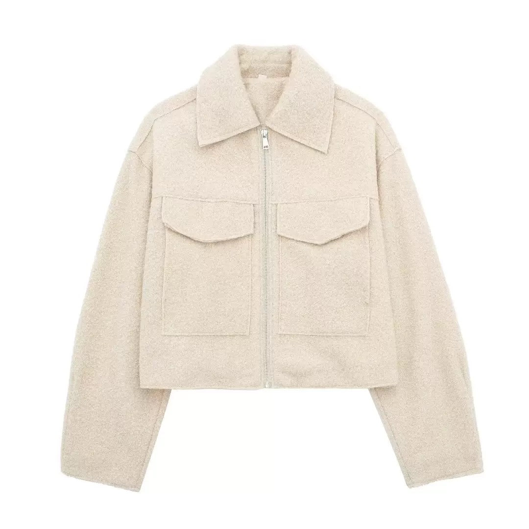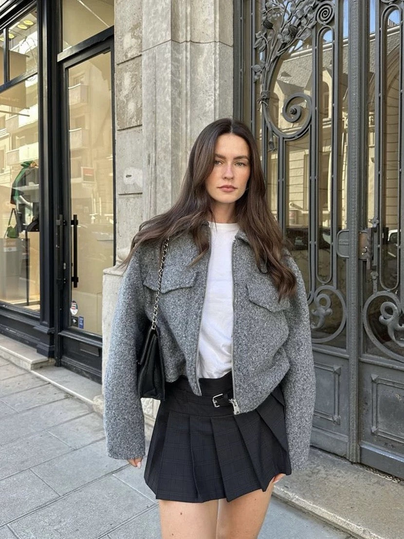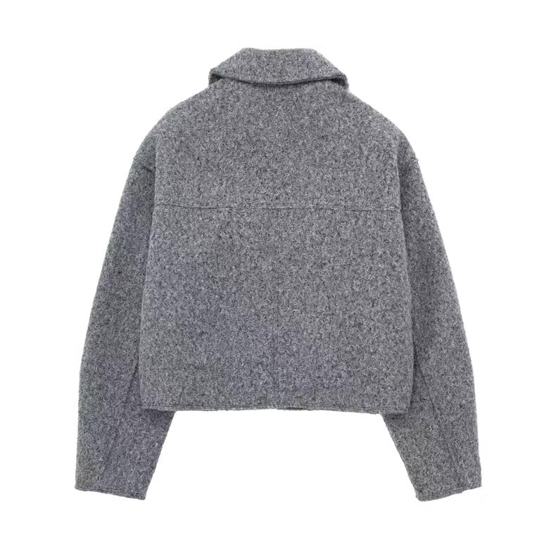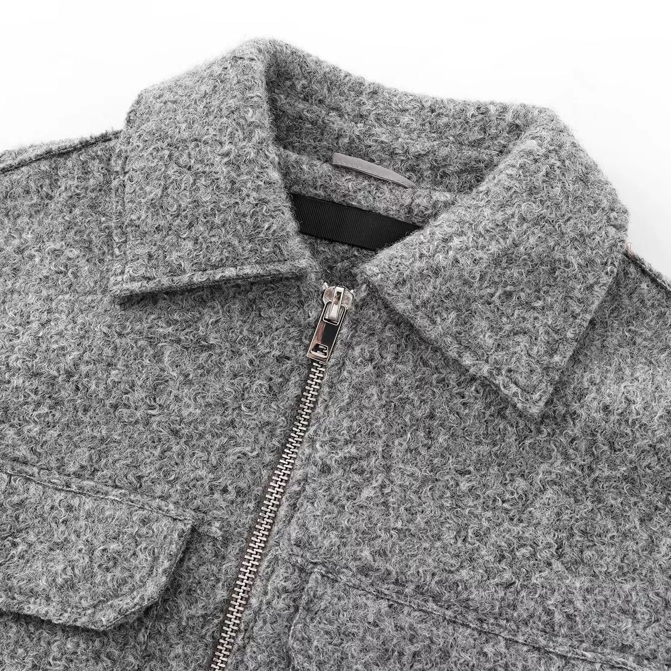 La Grise Élégance - Wolljacke mit Reißverschluss und Brusttaschen