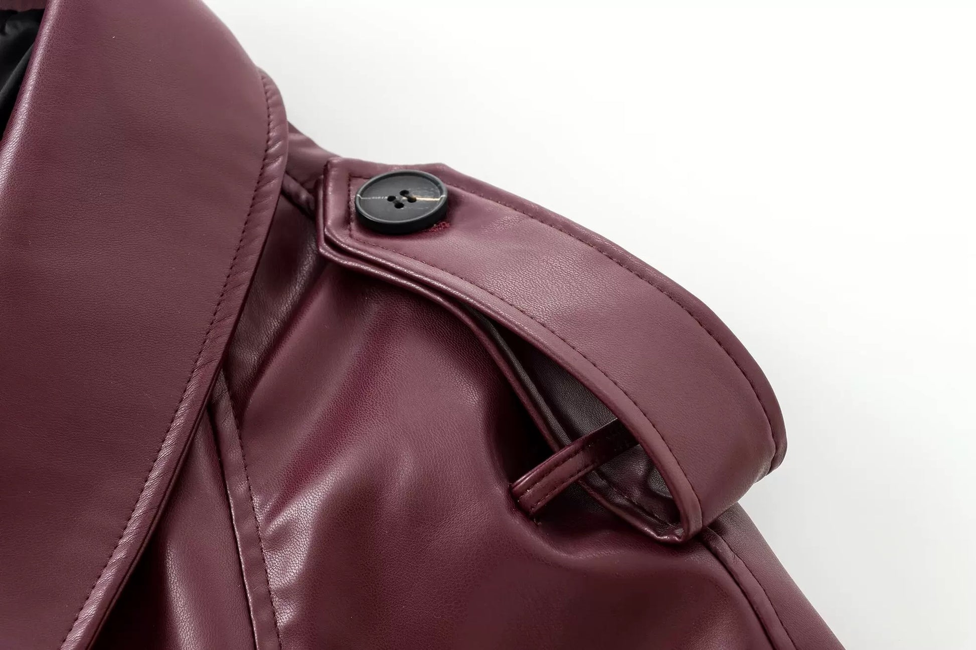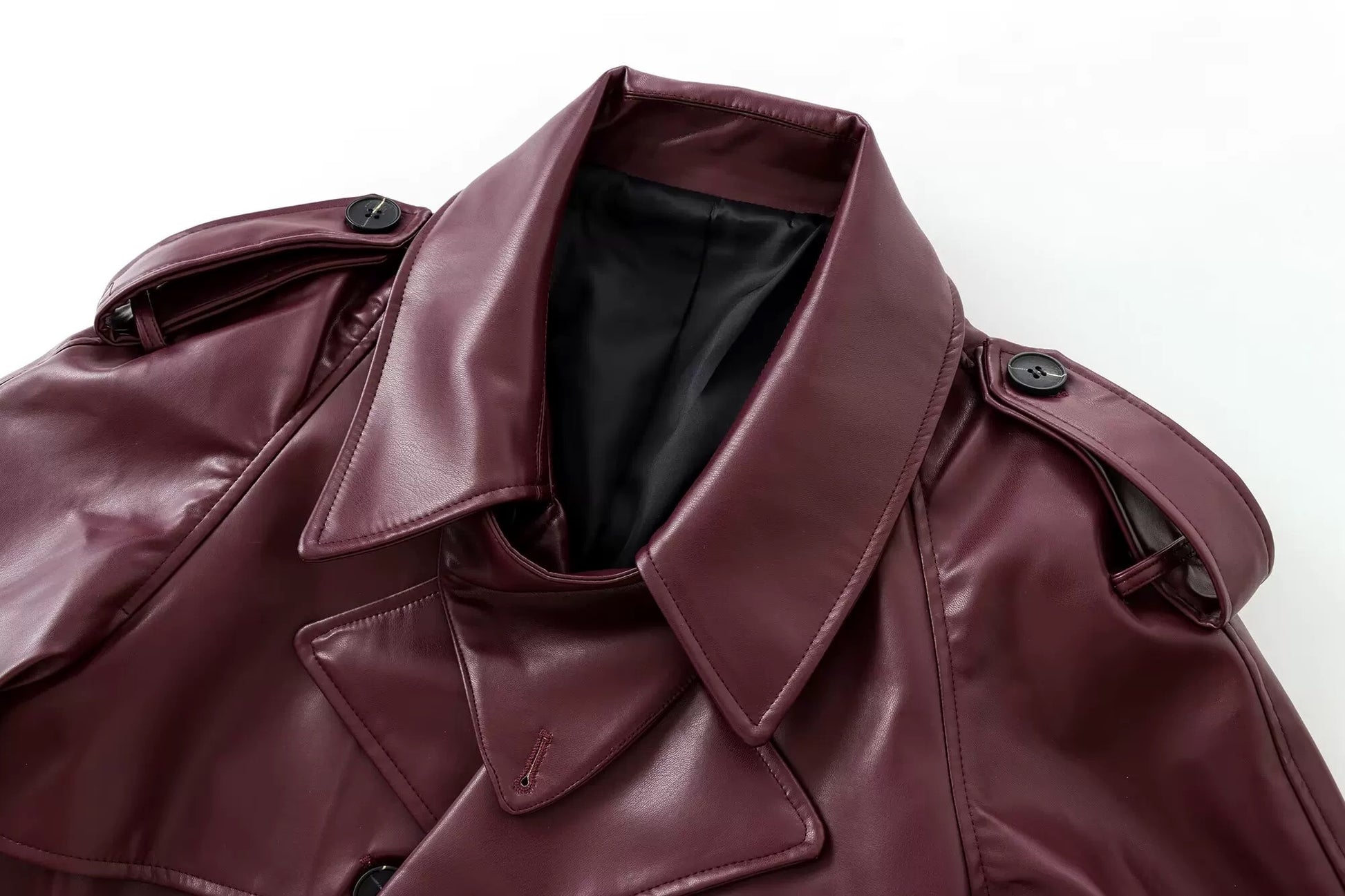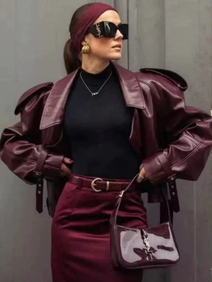 Ein Statement-Mantel, der klassische Schneiderkunst mit avantgardistischer Silhouette vereint. Gefertigt aus tief bordeauxfarbenem, hochglänzendem Kunstleder mit skulpturalen Schultern und übergroßem Kragen, erinnert „Le Manteau Architecte“ an die Macht der Struktur und Form. Die markanten Riemen-Details an den Ärmeln und das glänzende Finish machen ihn zum Inbegriff französischer Couture-Rebellion – stark, feminin, unverkennbar.