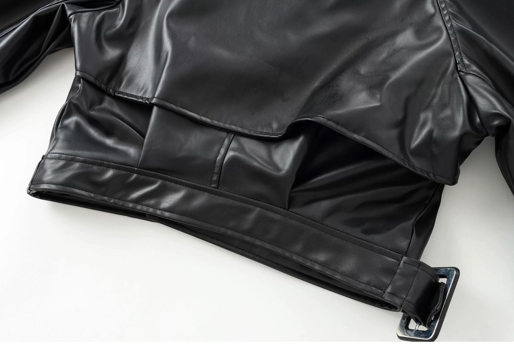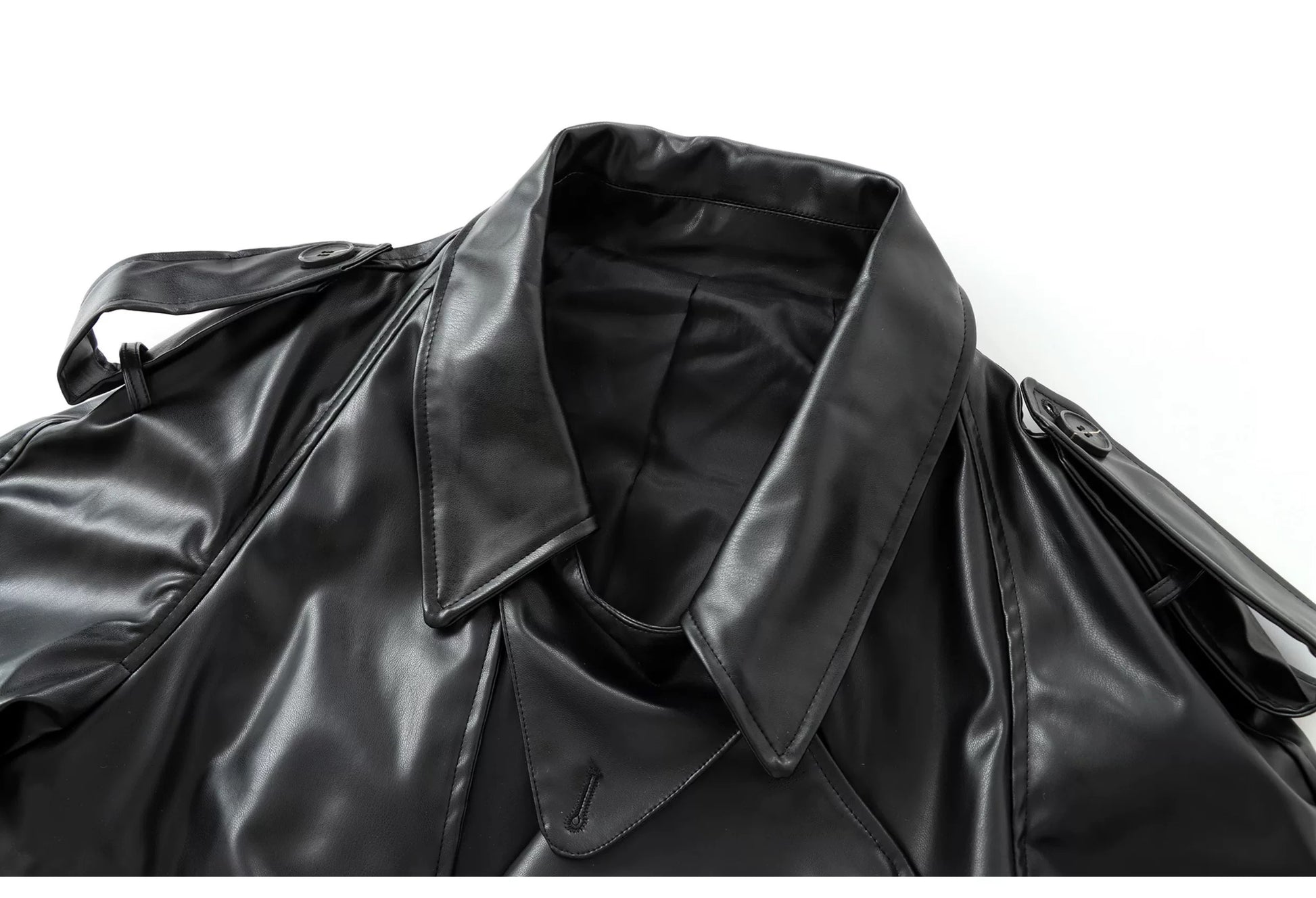 Ein Statement-Mantel, der klassische Schneiderkunst mit avantgardistischer Silhouette vereint. Gefertigt aus tief bordeauxfarbenem, hochglänzendem Kunstleder mit skulpturalen Schultern und übergroßem Kragen, erinnert „Le Manteau Architecte“ an die Macht der Struktur und Form. Die markanten Riemen-Details an den Ärmeln und das glänzende Finish machen ihn zum Inbegriff französischer Couture-Rebellion – stark, feminin, unverkennbar.