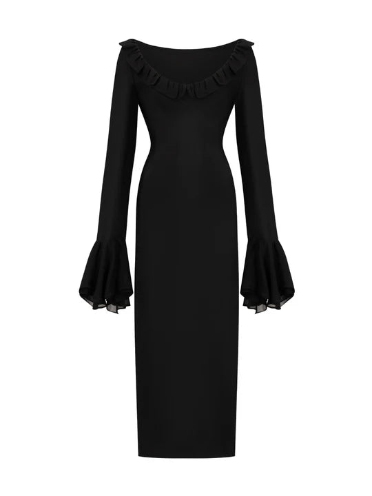 Details: Rüschen-Ausschnitt, Trompetenärmel